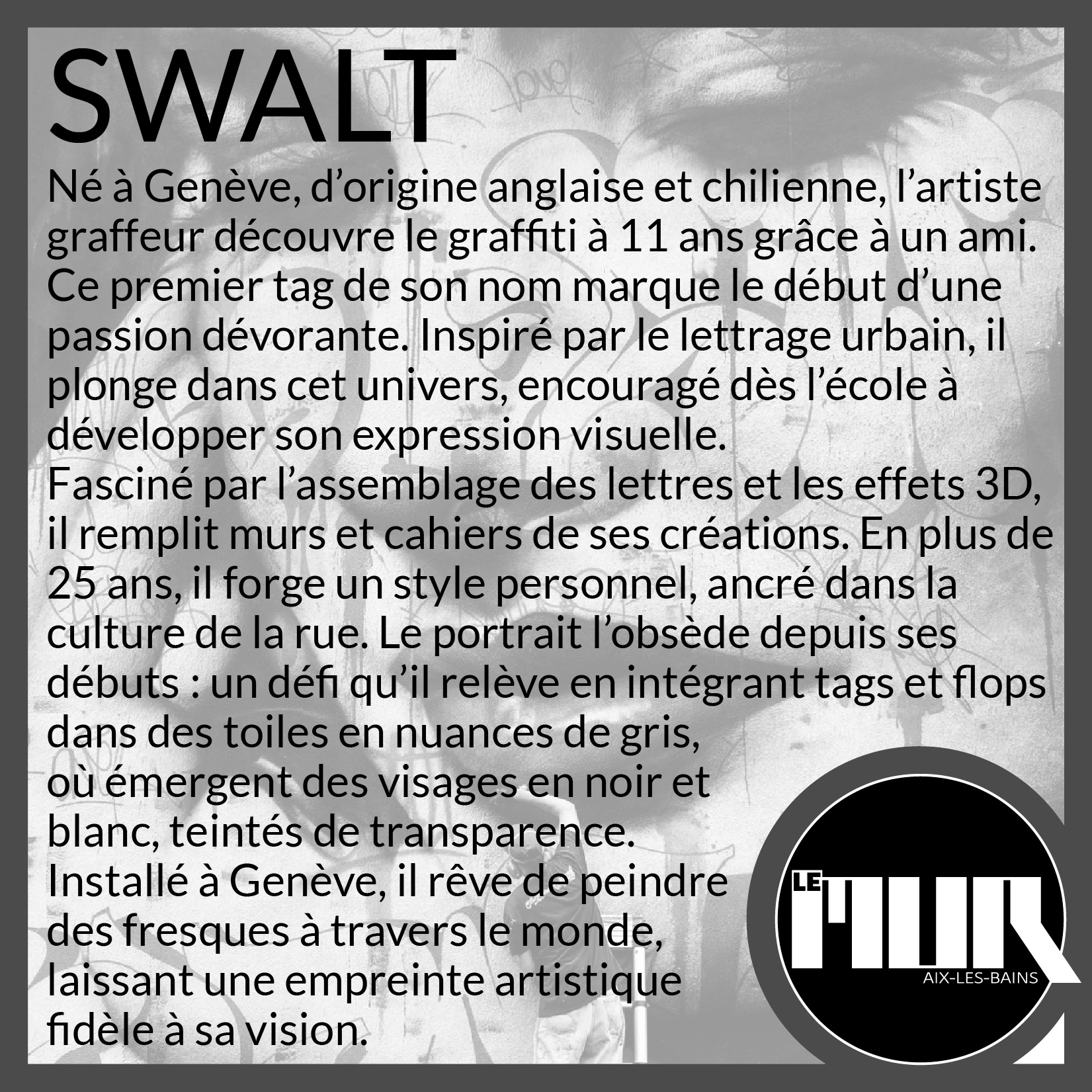 La ville d’Aix-les-Bains accueille la 1ère édition du Mr Wall Festival, un événement dédié à l’art urbain, organisé en partenariat avec Le MUR Aix-les-Bains et Fragment Art Dealer.