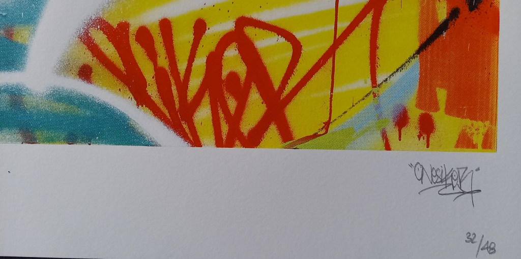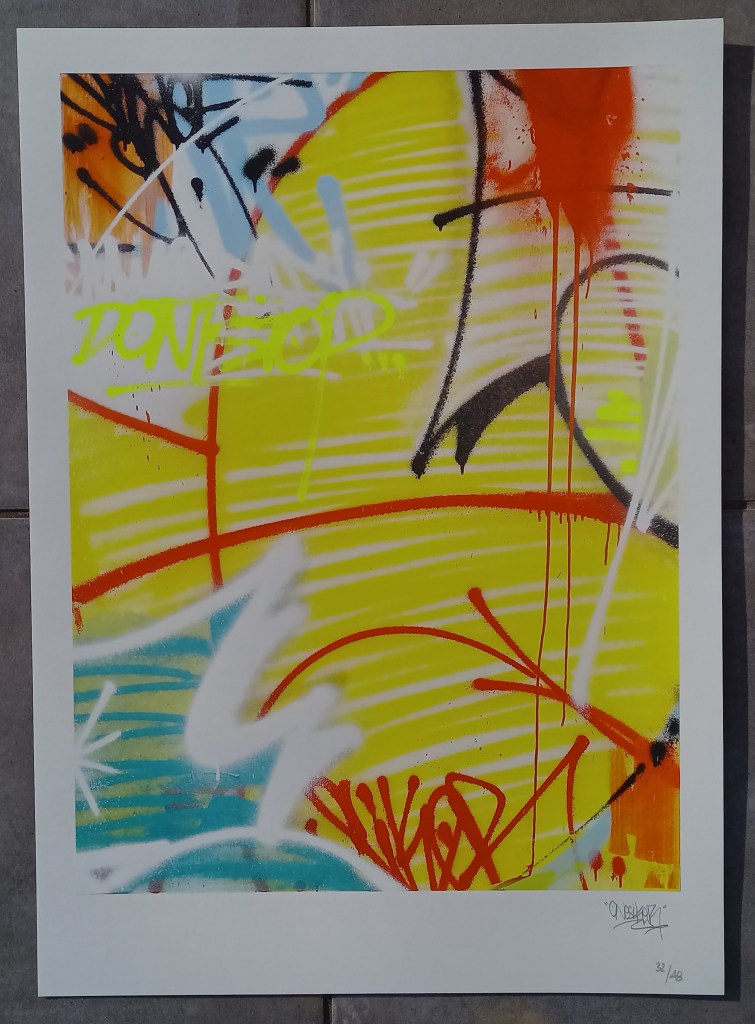 Sike silkscreen print. Inspired by his work for Le M.U.R. – Aix-les-Bains. 27,5 x 19,6 inches 70 x 50 cm 120 euros + 15 euros (mailing)